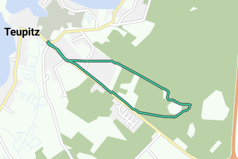 Percorso: Fermata dell'autobus Teupitz, Scuola - Cimitero della clinica Buchholzer Straße - Nicolassee - Heideplan - Waldstraße - Buchholzer Straße - Teupitz