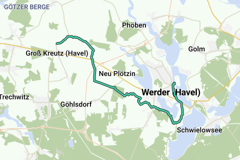 Percorso: Werder (Havel), Petzow, Glindow, Derwitz, Krielow, Groß Kreutz (Havel)