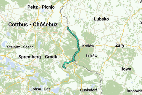 Percorso: Weißwasser, Kromlau, Gablenz, Bad Muskau, Köbeln, Pusack, Zeiz, Bahren, Klein Bademeusel, Groß Bademeusel, Forst (Lausitz)