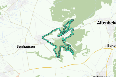 Di nuovo, su quasi tre chilometri, ci sono circa 150 metri di dislivello da superare fino a raggiungere il punto più alto di Paderborn. Non può sfuggire, poiché una “Croce di vetta” - con libro di vetta! - segna chiaramente il luogo. Attraversando il “Mittelholz”, si passa inizialmente accanto al “Faggio con le due gambe”, poi al Cimitero della peste e da lì si torna in direzione di Neuenbeken, sempre con belle vista sul villaggio. Dall'ex vetreria di Uhden e dal mausoleo della famiglia di vetrai c'è solo una breve discesa fino a raggiungere nuovamente il punto di partenza.