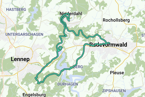 Partendo dal punto di partenza (parcheggio Hohenfuhrstraße, municipio, centro città, Radevormwald) ci dirigiamo a sinistra in Hohenfuhrstraße, passando accanto al municipio e alla distanza di 400 m giriamo a sinistra in Ülfestraße. Alla fine di Ülfestraße, giriamo a sinistra in Ülfe-Wuppertal-Straße, direzione Dahlhausen (NESSUNA PISTA CICLABILE PRESENTE, PER FAVORE CIRCULA A DESTRA!). Il piccolo Ülfebach ci accompagna per una lunghezza di circa 6 km e attraversa l'area ricreativa paesaggisticamente bella dell'Ülfetal con le acque imbrigliate dell'Ülfebad. Il percorso continua a destra, prestare attenzione alla precedenza! Arriviamo all'abitato di Dahlhausen e possiamo continuare a pedalare sulla pista ciclabile a destra della strada fino a Dahlerau. In quest'area, le cosiddette località Wupper, fino a qualche anno fa, l'industria tessile aveva il suo "grande splendore". Delle tre grandi aziende di una volta rimangono oggi solo i edifici e gli "insediamenti di lavoratori" ancora abitati e sotto tutela monumentale. Dopo circa 2 km giriamo a sinistra dalla pista ciclabile (la strada deve essere attraversata!) e raggiungiamo, con una leggera discesa sulla sinistra, la ex stazione di Dahlerau. Attraversiamo il ponte Wupper e giriamo a sinistra in Wülfingstraße. CONSIGLIO: girando a destra, dopo circa 300 m, si raggiunge il Museo dei tessuti Wülfing - una visita vale la pena. Da lì il percorso fino alla fine / barriera di Wülfingstraße si snoda lungo la Wupper su una strada chiusa al traffico automobilistico (fino al quartiere Wilhelmstal ci troviamo sulla Route Naturale e Museale Bergische "Strada del Lavoro"). Dopo il secondo attraversamento dei binari, continuiamo a sinistra su un pavimento in ciottoli storico, in direzione della ex stazione di Dahlhausen. Sui binari presenti si trova un certo numero di treni nostalgici. Abbandoniamo il pavimento in ciottoli e giriamo a sinistra in Hardtstraße (la strada deve essere attraversata). Dietro il viadotto ferroviario storico giriamo subito a destra in Hardtstraße. Da lì continuiamo su un ampio sentiero nel bosco fino all'abitato di Wilhelmstal. La Wupper con le sue dolci onde lungo un'area boschiva particolarmente suggestiva invita a sostare. Alla fine del sentiero nel bosco, nell'abitato di Wilhelmstal, continuiamo a sinistra su una strada asfaltata in direzione della diga della Wupper. Sotto il muro di contenimento la strada sale. Dopo circa 500 m giriamo a destra e raggiungiamo la sommità del dam con una vista splendida a 360 gradi. Sulla sommità del dam continuiamo a pedalare e alla fine giriamo a sinistra. Il percorso prosegue lungo la diga della Wupper con una vista fantastica su acqua e paesaggio. Dopo circa 1,5 km giriamo a sinistra e subito dopo altri 100 m giriamo a destra in direzione della centrale idrica di Lennep (Panzertalsperre) per continuare il percorso. Su questa strada ricca di boschi (consentita solo per il traffico locale), dopo circa 1 km, sopra un lieve pendio, si arriva alla pittoresca Panzertalsperre. Qui ci sono due possibilità per il percorso R2. Segui le indicazioni, poi prosegui dritto, dopo circa 200 m e una ripida breve salita gira immediatamente a sinistra in direzione di Repslöh. La strada attraversa un piccolo bosco e dopo un ulteriore piccolo "colle" si raggiunge l'insediamento di Repslöh. La seconda possibilità è quella di girare attorno alla Panzertalsperre su sentieri forestali solidi. Sopra la diga proseguire a destra e dall'asfalto, dopo circa 250 m, girare a sinistra e subito di nuovo a sinistra su un sentiero nel bosco. Segui sempre la recinzione che circonda la diga. Due volte, sempre alla fine della recinzione, il sentiero del bosco prosegue a sinistra, fino a raggiungere nuovamente la strada asfaltata dopo una piccola salita. Qui giriamo nuovamente a sinistra e a sinistra la Panzertalsperre ci accompagna per circa 400 m fino alla strada che gira a destra verso l'abitato di Repslöh. (Estensione del percorso di circa 1,6 km.) Da Repslöh si prosegue sul R2 a sinistra lungo una leggera discesa di 1,5 km attraverso il suggestivo vallone di Feldbach. Qui si può godere della natura pura. Alla fine della discesa, raggiungiamo il serbatoio e procediamo lungo la diga della Wupper fino alla fine della strada, qui ci posizioniamo a sinistra - la strada deve essere attraversata. La tour prosegue sulla pista ciclabile sul lato destro della strada (insieme al R1a) attraverso il ponte Wupper, dopo circa 600 m giriamo a destra verso il parco di svago Kräwinkel, che raggiungiamo dopo una breve e leggera salita. Da qui un percorso ciclabile di circa 4 km (ferrovia Bergerhofer sull'ex tracciato ferroviario con un lieve pendio attraverso campi e prati in direzione di Radevormwald, centro città). Alla fine del percorso ciclabile la strada deve essere attraversata a sinistra, via il punto di attraversamento. Il percorso ciclabile continua sul lato destro lungo Kaiserstraße e termina a un semaforo pedonale prima dell'incrocio con il centro città. La strada (a senso unico) continua dritta fino a prima della piazza del mercato (zona pedonale). La piazza del mercato viene attraversata a sinistra in direzione di Oststraße, dove, dopo ulteriori 200 m, si gira a sinistra in Schützenstraße (vicolo senza uscita). Dall'altro lato della strada si trova il punto di partenza, il parcheggio del municipio, raggiungibile attraverso il punto di attraversamento di Hohenfuhrstraße.