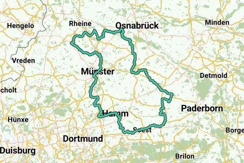 Su 390 chilometri, il tour in bicicletta attraversa nove centri cittadini dal Münsterland alla Sauerland. Uno più bello dell'altro. Tra le città, il percorso si snoda attraverso il pittoresco paesaggio del Münsterland, collegando perfettamente i punti salienti culturali e naturali. Il tour è perfetto, è progettato come un percorso ad anello e può essere percorso come una gita di più giorni.