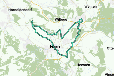 Vi porteremo prima al moor storico "Bad Meinberg Stinkebrink" nella valle del Napte, dove potrete informarvi sul fango curativo e sulle particolarità biologiche. Su un stretto sentiero ciclabile pedalerete attraverso la valle del Napte fino alla prima piccola collina, da dove potrete godere della vista sulle montagne della Foresta di Teutoburgo e dell'Appennino Egge con la Preußische Velmerstot alta 468 m. Passerete accanto alle mura della città di Horn con la Torre dei Gufo e arriverete nella piazza del mercato. Attraverso piccole viuzze pedalerete fino al Castello di Horn con il museo locale.