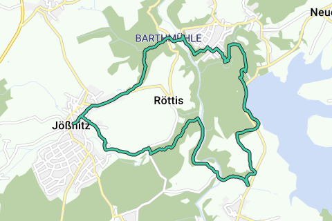 La nostra escursione passa accanto all'Eisenberg alto 435 metri. Dopo raggiungiamo il molo per le barche e il parco avventura. Il ritorno avviene attraverso Lochbauer, una vecchia fattoria a tre lati del Vogtland con una casa a struttura a telai del XVII secolo e attraverso la valle dell'Elster, passando accanto alla Pulpito del Diavolo, e alla valle di Nynphe, con una breve sosta al Mulino di Pfaffen, per tornare a Jößnitz.