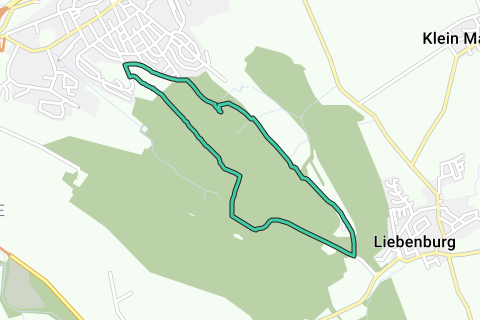 Questa escursione di oltre 8 km può essere interrotta da alcune aree di sosta. Due rifugi e soprattutto il ristorante forestale Hasenspringweg offrono posti a sedere e, se necessario, un tetto protettivo sopra la testa. La lunga strada forestale nel tragitto fino a Liebenburg è molto ampia e facile da percorrere. Alcuni pannelli informativi presso la foresteria di Liebenburg forniscono informazioni sugli animali e le piante nel bosco. Lungo il percorso si possono avere alcune vedute del campo da golf. Per una sosta è disponibile il ristorante forestale Hasenspring (attenzione agli orari di apertura). Il ritorno al bagno termale avviene attraverso il cosiddetto Birkenweg. Alla fine si gira a sinistra su Bismarckstraße e poi di nuovo a sinistra su Parkallee per tornare al parcheggio.