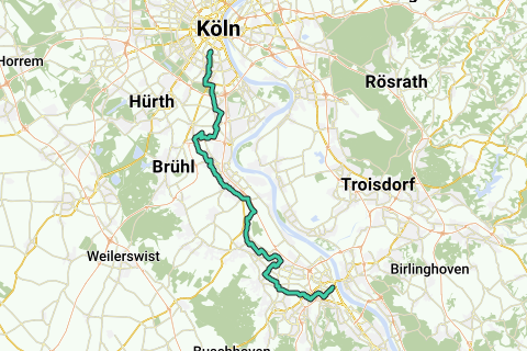 Nei dintorni di Bornheim, i terreni fertili della medio terrazzo del Reno non hanno consentito lo sfruttamento dei giacimenti di ghiaia. Qui si è potuta sviluppare fino a oggi un paesaggio di orti e giardini, che è stato nominato ''Giardini Renani'' per il corridoio. A seconda della stagione, i ciclisti possono attraversare un paesaggio molto variegato. Ma anche i vasti parchi e giardini del Palazzo Barocco di Augustusburg a Brühl, che è ancora oggi considerato un capolavoro del Rococò e uno degli edifici più significativi di questo stile in Germania, rendono giustizia a questo nome, così come il Volksgarten di Colonia e il Volkspark Fritz-Encke, che appartiene alla Cintura Verde Esterna di Colonia, all'inizio e il Hofgarten di Bonn e il Giardino Botanico alla fine del percorso ciclabile.