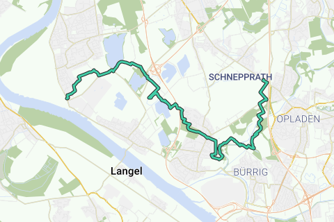 Il percorso ci porta lungo il neanderland STEIG accanto al lago Stöckenberg, attraverso il villaggio di Rheindorf e infine nelle pianure del Wupper. Attraversiamo il Wupper due volte e lungo il suo corso, ci dirigiamo verso nord, fino a raggiungere il nostro obiettivo di tappa a Langenfeld-Reusrath.