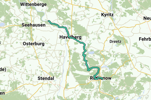Percorso: Rathenow, Steckelsdorf, Göttlin, Grütz, Neu-Schollene, Schollene, Neumolkenberg, Neumolkenberg, Warnau, Gartz, Kuhlhausen, Jederitz, Havelberg, Quitzöbel, Gnevsdorf