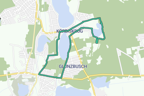 Stazione di Bestensee - Hauptstraße - Ponte Wilhelm-Franke sul Glunze - sinistra Am Glunzenbusch - riva del Todnitzsee - Viste sul lago a destra sulla B 179 Kameruner Straße - a destra sentiero al Tonsee - Kleiner Tonteich - fossato tra Kleiner e Großer Tonteich - Großer Tonteich - Bindower Straße - B 179 / Spreewaldstraße a destra - strada Am Todnitzsee - Karl-Marx-Straße - Campo sportivo di Bestensee - Paul-Sievers-Straße - a sinistra nella Zeesener Straße - Stazione di Bestensee