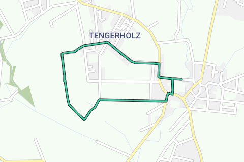 Dalla Backhaus verso ovest lungo la "Schulstraße" fino alla "Löhner Straße", qui a destra fino a "Zum Vorwerk". Proseguire lungo il percorso "Zum Vorwerk" fino al trasformatore, poi a sinistra e al bivio di nuovo a sinistra. All'incrocio successivo a sinistra fino alle singole case. Poi a destra sulla via "Im Bruchfeld" fino alla "Huchzener Straße", a sinistra fino alla "Löhner Straße", poi a destra fino alla Volksbank. Qui attraversare la strada, poi tornare indietro lungo la "Schulstraße" fino al Backhaus.
