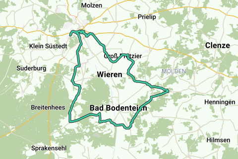 75.4 km02:30 h349 hm110 m37 mMolto facileInfo tour da scaricare: Il percorso dalla città è breve. Già a Groß Liedern si percepisce un notevole silenzio, e si può andare in bicicletta e concentrarsi sul paesaggio. Le strade diventano più strette e alcune dolci colline ricordano che l'ultima era glaciale ha formato il "bacino di Uelzen". Alcuni villaggi dopo, a Soltendieck, l'immagine cambia. Diventa notevolmente più boschiva e ondulata. Un habitat ideale per il cervo rosso e il capriolo, che amano attraversare le strade poco trafficate anche durante il giorno. Qui, nelle vicinanze della Sassonia-Anhalt, si trovava in passato il confine ben sorvegliato della DDR con strisce di controllo, recinzioni elettriche e impianti di sparo automatico. Il museo "Unità Tedesca" a Bad Bodenteich ricorda ancora quel periodo. Direttamente sul posto, le tracce sono in gran parte scomparse. Tuttavia, lungo la strada verso Schafwedel si trovano i resti di un altro confine: nel Medioevo si scavavano terrapieni, una "Landwehr", per costringere i mercanti su determinate vie e per riscuotere dazi. Ci spostiamo su strade per lo più senza auto attorno a Bad Bodenteich (anche se il luogo con il suo ex castello d'acqua offre molte cose interessanti da scoprire). Per un breve periodo dobbiamo passare dalla Reinstorf a Bokel su una strada statale poco trafficata. Dopo, è richiesta un'altra dose di resistenza, con diversi tratti in salita e in discesa che si alternano in breve successione. Così come è iniziato rapidamente, termina altrettanto in fretta. A un ritmo tranquillo, su un terreno che diventa nuovamente pianeggiante, attraversiamo diversi villaggi e raggiungiamo infine il nostro punto di partenza.