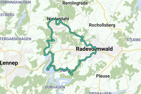 Radevormwald fa parte della contea di Berg dal 1380 ed è stata già nei primi anni una importante metropoli dell'industria tessile. L'intero percorso (20,5 km) segue il segnale del sentiero "Ra" e parte dal parcheggio del municipio nel centro di Radevormwald. Si attraversa l'antica piazza del mercato e si prosegue verso la romantica valle di Wiebachtal attraverso Espert. Con il Wupperweg - il cui simbolo è un rombo con il numero 6 - si attraversano antichi boschi misti fino a raggiungere le località di Berg e Heidersteg, prima di arrivare alla riva della diga del Wupper, passando per rigogliose praterie umide, dove il timido airone cerca ancora nuovetto, rospo d'erba o la rara biscia d'acqua inoffensiva. Presto si arriva a Krebsöge, diviso in due parti dalla costruzione della diga, di cui quella meridionale è scomparsa nelle acque del bacino. Sulla riva del Wupper e lungo la Route Naturale e Museale Bergische "Strada del Lavoro", il cammino si snoda attraverso Wilhelmstal, passando per il precedente stabilimento tessile, diretto verso Dahlhausen con la sua stazione museale e verso Vogelsmühle, dove ex alloggi per lavoratori e edifici di un'antica fabbrica di tessuti testimoniano il grande periodo dell'industria tessile locale. Di più si può trovare dietro la prossima curva del fiume a Dahlerau nel Museo Tessile Wülfing. Successivamente si sale verso Obergrunewald e Herkingrade con la sua locanda "Zur schönen Aussicht". Su terreni collinari, passando per l'Uelfebad, la più piccola diga di Germania, e accanto alla Casa da Giardino in stile rococò del 1772, ci si avvicina nuovamente al centro di Radevormwald. Proprio di fronte al municipio si trova il museo locale, che espone la storia della città.
