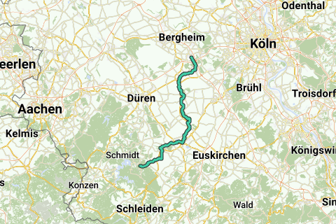 I punti finali, ovvero i punti di arrivo della rotta, Kerpen-Sindorf e Heimbach, sono collegati alla rete ferroviaria, consentendo così di percorrere il tragitto in bicicletta e di tornare utilizzando il treno.