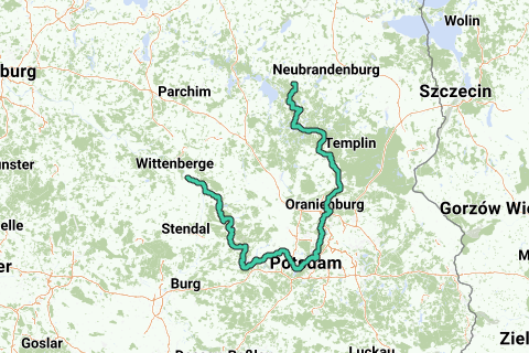 Percorso: Wesenberg, Fürstenberg (Havel), Zehdenick, Liebenwalde, Oranienburg, Hennigsdorf, Potsdam, Werder (Havel), Brandenburg an der Havel, Rathenow, Hansestadt Havelberg, Gnevsdorf
