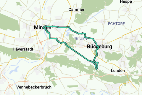 Questo tour vi porterà nella regione di Schaumburg. Inizialmente si attraversa il ponte della Weser e il successivo "ponte colorato" presso il monumento del Grande Elettore. Quando la Weser è in piena, queste aree sono sommerse fino al muro della fortezza della stazione. Un'attrazione particolare è quando arriva un forte gelo e l'acqua bassa si trasforma in una superficie ghiacciata. Se guardate a destra, avrete una vista splendida sulla Porta Westfalica e sulle dolci colline del Weserbergland con la torre televisiva sul Jakobsberg e il monumento a Guglielmo I sul Wittekindsberg.
