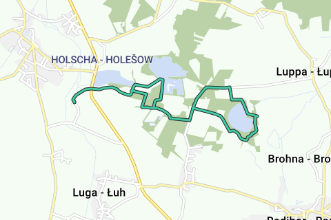 Il tour inizia presso l'azienda agricola di Kleinholscha, attraversa l'area protetta "Stagni tra Neschwitz e Großdubrau", in parte su prati e campi e lungo i laghetti.