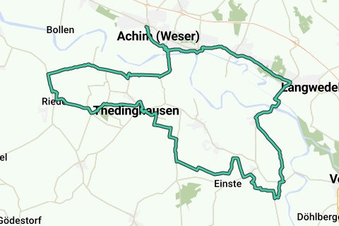 Iniziate la vostra ciclovia ad Achim. Potete iniziare questo circuito anche da qualsiasi altra località lungo il percorso. Troverete parcheggi in tutte le località lungo la pista ciclabile. Al centro del "Quartiere dei contadini", l'origine dell'attuale città di Achim, sorge sulla dorsale di una Geest la chiesa di San Lorenzo, costruita nel XII secolo, con ricca decorazione interna. Da lì, fate una deviazione attraverso il centro città verso la chiesa cattolica in Meislahnstraße. Poi tornate al punto di partenza, passando anche per la "Clüverhaus" (casa a due sostegni). Vale la pena visitarla. Passando accanto al mulino a vento di Achim, giungerete al ponte sul Weser, attraversate il fiume e la Wesermarsch si aprirà davanti a voi. Attraverso i prati della marsh arriverete all'impianto di pompaggio di Eyterschöpfwerk presso Eißel.