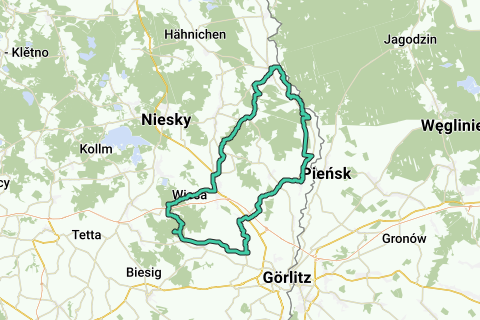 Da Rothenburg si prosegue inizialmente verso Geheege e poi ancora verso Biehain e si raggiunge un sentiero segnato in verde che porta attraverso Mückenhain a Kodersdorf. Da qui una strada di campagna conduce su una ripida altura verso Wiesa. In direzione di Thiemendorf, qui il Froschradweg incrocia la strada. Hochstein, Firstenstein, Kuckukssteine e Opfersteine sono mete popolari. Dal Hochstein puoi scendere sul lato opposto verso la stazione ferroviaria dismessa. Qui inizia una bellissima pista ciclabile che segue il tracciato ferroviario dismesso fino a Görlitz. Puoi anche raggiungere la pista ciclabile seguendo la strada da Thiemendorf verso Königshain. Se poi segui la pista ciclabile in direzione nord, attraverserai Kunnersdorf e dopo circa 5 km raggiungerai la strada statale 115, che però attraverserai solo per rimanere sulle tranquille strade di campagna.
