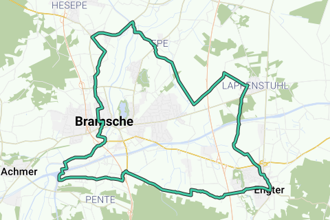 All'inizio può esserci una visita al Museo del Tessitore. Si prosegue in direzione di Engter. Per ristorarsi, è consigliato l'albergo Rothert. Si attraversano poi le frazioni di Lappenstuhl, Malgarten e Hesepe. Per i ciclisti con e-bike a Lappenstuhl - è necessaria una piccola deviazione - presso il ristorante Vicianum c'è la possibilità di caricare gratuitamente la batteria.
