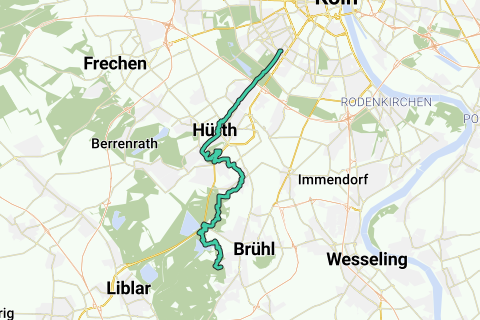 Fase 7: Brühl – Colonia-Sülz – 19 km. Nell'ultima fase si entra definitivamente nella vita urbana, parzialmente lungo il Duffesbach, che forniva acqua anche a Colonia ai tempi romani e che oggi è per lo più sotterraneo. La via del canale romano termina in piazza Manderscheider.