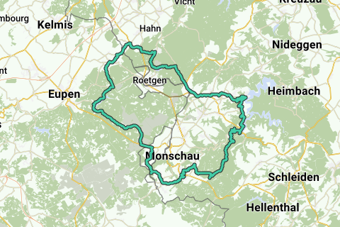 Laghetto di Eupen – Mospert – Waldstrasse – Botz (Raeren) – Schmithof – Rotterdell – Rott – Dreilägerbachtalsperre – Hähner Strase – Waldsiedlung – Lammersdorf (panetteria) – Rollesbroich – Strauch – Steckenborn – Woffelsbach – Lago di Rur – Rurberg – Dedenborn – Langscheider Strase – Rothe Kreuz – Rohren – Höfen – Alzen – Kalterherberg – Leyloch – Eschweide – Eupener Strase – Brackvenn – Laghetto di Eupen.