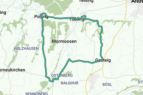 Il tour Brotzeit in Baviera, situato nelle vicinanze di Heiligenstatt, offre un percorso ciclistico vario di 21,4 chilometri. Con un livello di difficoltà medio e 169 metri di dislivello, questo percorso ad anello è ideale per i ciclisti che cercano una piccola sfida. La maggior parte del percorso è ben percorribile e in eccellenti condizioni. Lungo il tragitto puoi ammirare l'imponente ensemble del castello con la piazza del mercato e il municipio di Tüßling. Queste attrazioni rendono il tour non solo sportivo, ma anche culturalmente arricchente. Fai una pausa, goditi l'ambiente e lasciati ispirare dalla bellezza della Baviera.
