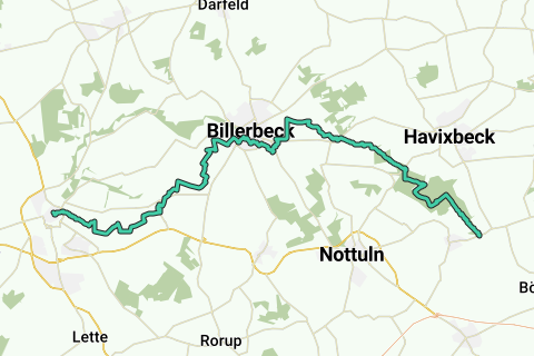 Sei pronto per un'avventura di escursionismo indimenticabile? Il sentiero Baumberger Ludgerusweg ti porta attraverso la natura mozzafiato del Nord Reno-Westfalia, proprio nei pressi della rovina di Ludgerusburg. Per 29,9 chilometri esplorerai un ambiente per lo più naturale che ti incanterà con la sua bellezza incontaminata. Il percorso ha una difficoltà media e ti sfida con un dislivello totale di 328 metri, mentre passi accanto a luoghi interessanti come l'abbazia di Gerleve e Coesfeld. Particolarmente piacevole è che la maggior parte del percorso è a bassa traffico o addirittura priva di auto, permettendoti di godere appieno della tranquillità della natura. L'escursione è ben segnalata e la maggior parte dei tratti si snoda su sentieri sterrati, perfetti per gli amanti della natura. Preparati a scoprire il paesaggio e a ricaricare le energie.