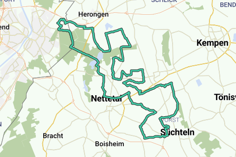 Attraverso la pista ciclabile asfaltata su una vecchia linea ferroviaria, il percorso si dirige verso le Süchtelner Höhen, la regione collinare intorno al paese di Süchteln. Qui ti aspettano tre salite (tutte e tre con un'inclinazione massima del 9%). Poi il percorso si dirige verso le Hinsbecker Höhen. Una discesa del 6% ti porta a Hinsbeck e poi segue la salita dell'Oberstraße con un'inclinazione massima del 10%. Successivamente, il percorso attraversa la valle del fiume Nette e attraverso l'area boschiva della Wankumer Heide in direzione di Herongen.