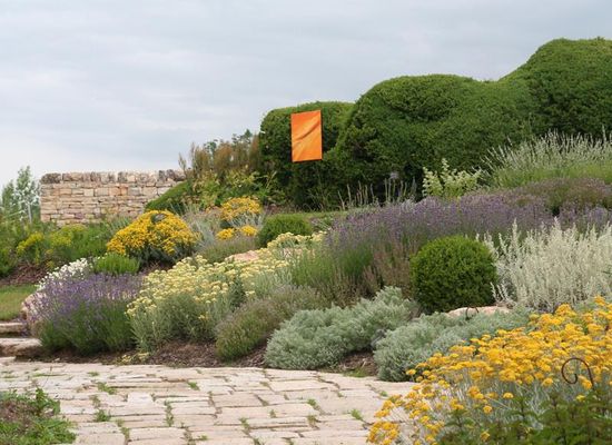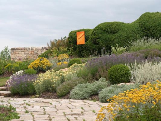 Il Giardino dell'Armonia, progettato dall'architetto paesaggista Jacques Couturieux per sostituire il precedente giardino del monastero, combina un viale di bossi secolari con aiuole di arbusti e piante perenni.
