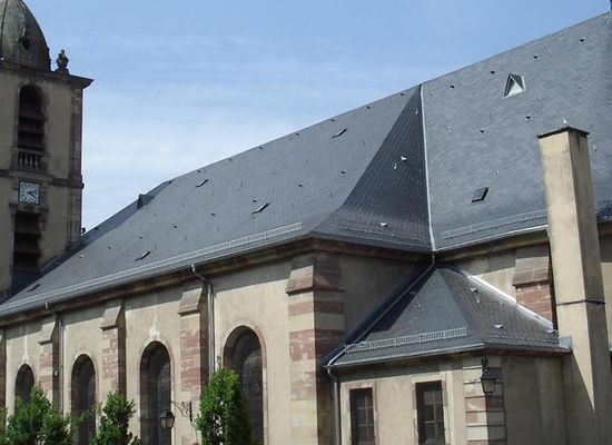 Chiesa in pietra arenaria dei Vosgi e in stile neoclassico, fu costruita dal 1760 al 1768. Prende il nome da San Nicola, patrono dei barcaioli, dei bambini e della Lorena. Il monumento fu costruito secondo i piani dell'architetto militare Charles Martin. La sua architettura è massiccia e, se si osserva il frontone, si possono notare motivi che evocano insegne militari (elmi, bandiere, ecc.) a gloria dei Divini Eserciti. Nella parte superiore della porta d'ingresso sono scolpite tre teste d'angelo, poste sopra e sotto un triangolo contenente l'occhio di Dio. Questa figura rappresenta la Santissima Trinità. Nel XVIII secolo, la chiesa era un edificio molto imponente in proporzione al numero di abitanti della città (2000 persone alla fine del secolo). All'interno, l'edificio contiene interessanti mobili del XVIII secolo. L'altare maggiore e il pulpito sono opere caratteristiche del periodo barocco. Il pulpito è interessante per i suoi motivi rocaille. È decorata con la colomba, simbolo dell'ispirazione divina, e con i quattro evangelisti Luca, Matteo, Marco e Giovanni in stile naif. La chiesa possiede anche un notevole organo barocco, acquistato nel 1769, che è stato modificato più volte, l'ultima dopo l'incendio del 1990. L'attuale facciata è costituita da un corpo centrale del XVIII secolo e dalle torri laterali (1850). La parte strumentale è stata ricostruita dall'organaro Yves Koenig secondo le specifiche di Norbert Petri. I tre grandi dipinti del coro sono opera di Januareuszick, il pittore ufficiale di corte del principe vescovo di Treviri. Rappresentano la Natività, la Discesa dalla Croce e la Resurrezione. La scultura più preziosa e più costosa del coro del Sarregueminois è la Pietà nella Cappella della Vergine (1663).