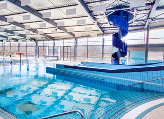Piscina sportiva di 25 m, piscina estiva all'aperto, fossa per i tuffi, scivolo di 70 m, pentagliss, bowling (6 corsie), spiaggia e piscina all'aperto, parco giochi, snack bar e centro fitness. Vietato l'uso del costume da bagno. Nota bene: periodo scolastico lunedì 12h/1h15 (solo piscina sportiva) e 16h30/17h. Martedì 12h/13h15 (solo piscina sportiva) e 16h30/19h00. Mercoledì 9h/12h? 14.00/17.00. Giovedì 12h/13h15 (solo piscina) e 16h30/19h00. Venerdì 12.00/13.15 (solo piscina sportiva) e 16.30/21.00. Sabato 10.00/18.00 Domenica 9.00/18.00. Periodo di vacanza (belga e francese) Da lunedì a venerdì dalle 10.00 alle 12.30 e dalle 14.00 alle 19.00. Sabato e domenica dalle 10.00 alle 19.00. Un servizio di trasporto è fornito dalla linea di autobus TEC n. 422. Le fermate dell'autobus sono - Quatre Cheminées - Intermarché - COSEC Berthelot - stazione - place Méhul - Pont des Américains - place de la République - cimitero di Notre Dame - chiesa di Notre Dame - ponte di Lussemburgo - centro Aqualudique.Il centro Aqualudique è servito dal lunedì al venerdì in direzione Givet Beauraing alle 8.04, alle 13.43 e alle 17.50, con una fermata aggiuntiva il venerdì alle 11.45. Si noti che l'autobus non circola il sabato, la domenica e nei giorni festivi. L'accesso all'autobus è aperto a tutti gli utenti, francesi o belgi, dietro pagamento di un biglietto.
