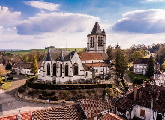Tra i due, la navata fu ricostruita alla fine del XV secolo dalla comunità parrocchiale in un sobrio stile tardo-gotico. Mezzo secolo più tardi, a spese del clero e delle famiglie nobili, come era consuetudine nella Champagne, questa apertura del sito, così come i cambiamenti di gusto e la prosperità generale, permisero di ampliare il grande coro e i due bracci del transetto, con le loro tre absidi a 4 e 5 lati. Le ampie finestre garantiscono un'ottima illuminazione.
