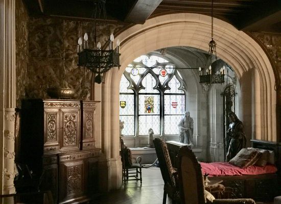 Queste pitture e sculture sono completate da una serie di vetrate di alta qualità, quelle della cappella, brillantemente eseguite nello stile del XIII secolo, e quelle dello scalone, che sembrano sorprendentemente ispirate allo stile preraffaellita inglese, e completano il quadro di Chacenay come un raro esempio di quei gabinetti di dilettanti illuminati noti nel XIX secolo come antiquari.