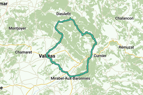 Un piacevole viaggio in bicicletta che ti porta da Dieulefit a Valréas tramite Le Pégue. Dal km 8 al km 15 si svolge su una piccola strada in condizioni piuttosto scadenti, con a metà la ripida e inaspettata salita del Col de Pègue vicino ai Champs des Morres; tuttavia, questo è compensato dalla pace e dalla bellezza del paesaggio. Da Valréas, il viaggio prosegue attraverso i vigneti verso Vinsobres e oltre tramite il Col de la Croix Rouge fino a St.-Ferréol-Trente-Pas. Iniziano a Trente Pas e si deve affrontare la salita del Col de Valouse. È il punto più alto del viaggio con splendide viste nel Ravin des Tardieux. Dal Col de Valouse si scende per gli ultimi 11 km di ritorno a Montjoux e Le Serre de Turc.