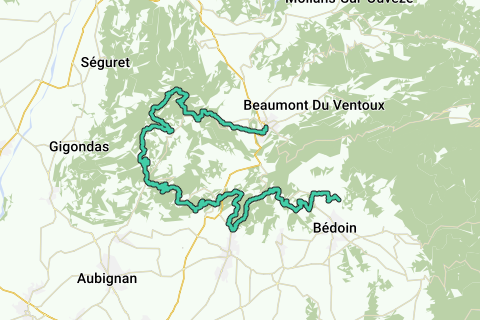 Dietro Malaucène, la città della bicicletta e porta nord del Mont Ventoux, si dirige verso la terra delle Dentelles de Montmirail. In una lunga salita verso il bacino e il crinale di Saint Amand (altezza 615m) si possono raggiungere i punti panoramici non ostruiti sulle celebri creste calcaree delle Dentelles de Montmirail. Il percorso prosegue con un profilo piuttosto in discesa, attraverso il villaggio di Suzette, in un paesaggio di boschi di pini e vigne, fino a Lafare. Questo tratto molto collinare è una delle parti più faticose del percorso. Dietro Lafare si attraversano i villaggi montani di La Roque-Alric e Le Barroux, per poi dirigersi attraverso una serie di bellissimi sentieri in direzione del lago Le Paty e della sua zona circostante. Su un bel tratto verso il Passo Madeleine (altezza 448m) si può poi riposare un po'. Dopo un'incredibile traversata dell'area ocra a La Font de Loup, si prosegue comodamente verso Bedoin, la porta sud del leggendario Mont Ventoux.