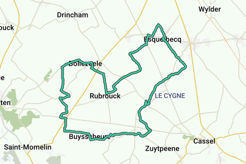 Iniziamo a pedalare verso Buysscheure (dove si trova la fonte ufficiale dell'Ijzer) e proseguiamo attraverso Lederzeele verso Volckerinckhove. Qui si trova l'organizzazione Yser Houck che studia e restaura il patrimonio tradizionale fiammingo. Poi saliamo verso l'altopiano di Merckeghem e pedaliamo lungo la cresta collinare fino a Bollezeele. Successivamente ci aspetta il pittoresco villaggio di Rubrouck, paese natale di Willem van Rubrouck, una sorta di Marco Polo fiammingo. Esquelbecq (Ekelsbeke) ha vinto nel 2023 il titolo di 'Villaggio preferito dei francesi'. Nella piazza del villaggio ammiriamo una bella chiesa e un castello. Nei dintorni si trova un sito commemorativo particolare, La Plaine au Bois. Attraverso Ledringhem ci dirigiamo verso Arnèke, un tempo un noto luogo di pellegrinaggio. Infine pedaliamo verso il piccolissimo Ochtezeele e Noordpeene.