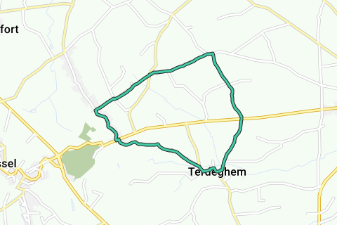 Attraversiamo la strada da Steenvoorde a Cassel, un'antica via militare. Ora ci dirigiamo verso Le Ryveld, un quartiere situato a un'altitudine leggermente superiore. Presso la cappella giriamo a sinistra e rivolgiamo lo sguardo verso Cassel. Camminiamo fino alla base della Recolettenberg, la montagna boschiva gemella accanto alla Casselberg.