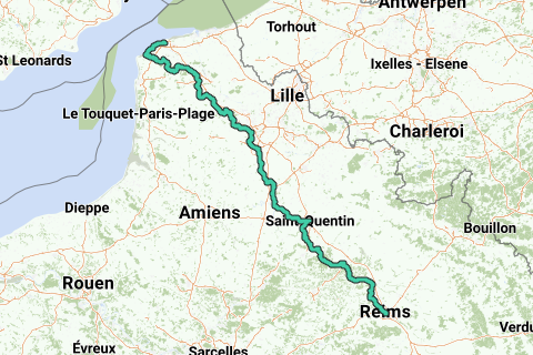Questa è la parte 1 del percorso completo della Via Francigena in Francia. La Via Francigena va da Canterbury (GB) a Roma (I). In Francia, questo percorso di pellegrinaggio è designato GR 145. È possibile suddividere l'itinerario in percorsi gestibili con un programma come Garmin Base Camp o Mapsource.