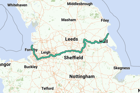 Il Trail da costa a costa tra Southport e Hornsea è lungo 215 miglia (346 km).