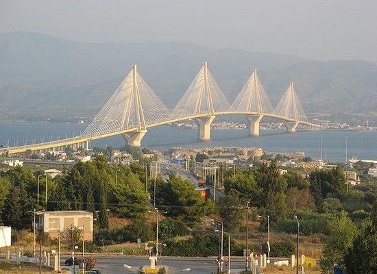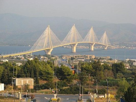 Il ponte Rion Antirion , chiamato anche ponte Charilaos Trikoupis, attraversa il golfo di Corinto tra le città di Rion, nel Peloponneso, e Antirion, nella Grecia continentale.