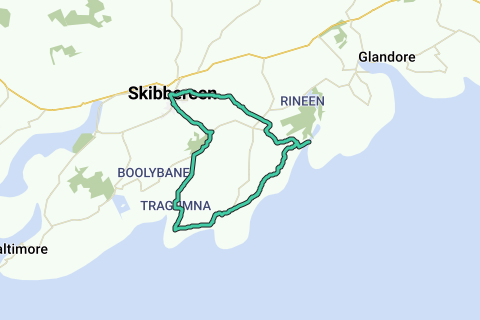Scopri tutti i vantaggiQuesto percorso inizia presso l'Ufficio Postale di Skibbereen e passa vicino a Lough Abisdealy lungo il suo cammino verso la costa della spiaggia di Tragumna, da dove segue i promontori, le baie e i promontori di questa parte del West Cork fino a Castletownsend e ritorno a Skibbereen. Ci sono viste meravigliose sull'Atlantico. Include diverse colline ripide e alcune molto ripide, e occorre prestare attenzione in alcune sezioni e a certi incroci.