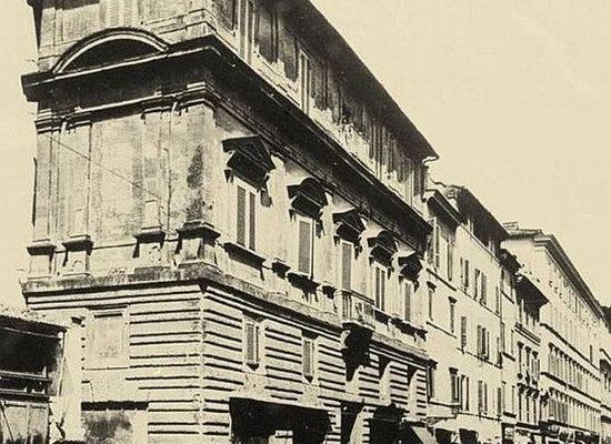 Nel 1940 il palazzo fu ricostruito, con un'altra pianta e volumetria e utilizzando per la facciata materiale originale, su Via Rusticucci in angolo con Via dei Corridori, non lontano dal sito originario.