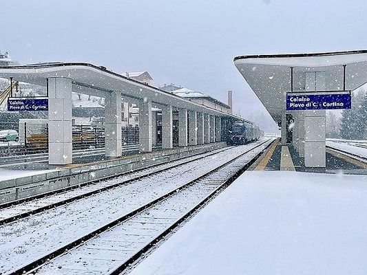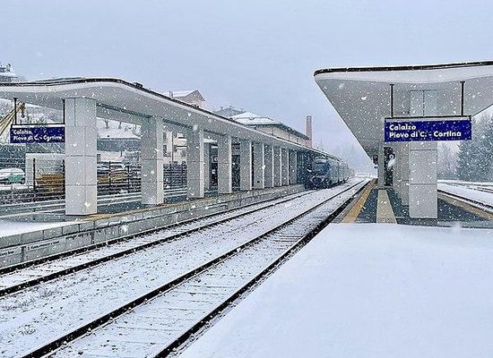 La stazione di Calalzo-Pieve di Cadore-Cortina rappresenta il capolinea settentrionale della Ferrovia Calalzo-Padova. Serve Calalzo di Cadore, il comune limitrofo di Pieve di Cadore e Cortina d'Ampezzo, anche se quest'ultimo comune dista circa 35 km dalla stazione; per agevolare il collegamento con "la Regina delle Dolomiti", da marzo 2020 è collegata con un servizio CortinaLink, svolto da Trenitalia e Dolomitibus. Nata col nome di Calalzo-Pieve di Cadore, mutò denominazione nel 1989.