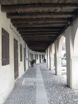 Si tratta di un lungo porticato che si articola in due emicicli interrotti dal passaggio di una strada pubblica . All'interno è racchiuso un ampio spazio circolare che costituisce il cuore del paese.