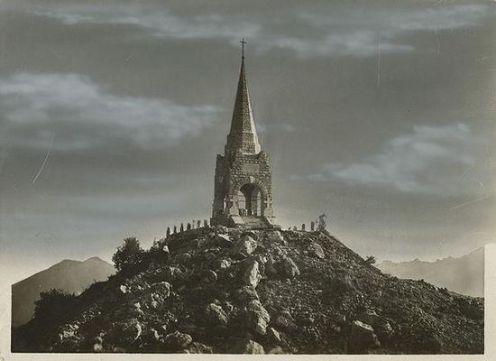 Durante la Grande guerra, alle ore 5:45 del 23 settembre 1916, 14.200 kg di sostanze esplosive furono fatte brillare dall'esercito austro-ungarico, sconvolgendo per sempre la vetta del monte Cimone e seppellendo vivi centinaia di soldati italiani che la presidiavano: la montagna era infatti diventata un punto di fondamentale importanza dopo l'Offensiva di Primavera scatenata dalle truppe imperiali.