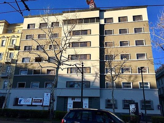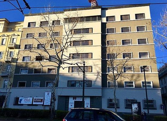 Fu realizzato tra il 1928 e il 1930 e secondo quanto riportato dalla stampa di settore dell'epoca, l'edificio fu il primo d'Italia a essere concepito appositamente per ospitare esclusivamente uffici. Al suo completamento, fu acclamato dalla stampa di settore come simbolo della nascente corrente del Razionalismo italiano. Fu sede delle molteplici aziende di Gualino tra cui la SNIA fino al 1932, quando Gualino venne arrestato, costretto al confino e le sue aziende sequestrate e messe all'asta. Dapprima l'intero immobile fu acquisito dalla Fiat e divenne sede dell'ufficio personale del Sen. Agnelli e in seguito fu sede degli uffici dei nipoti Giovanni Agnelli e Umberto Agnelli.