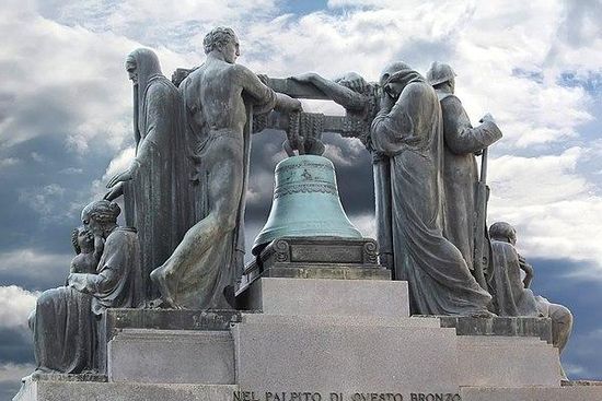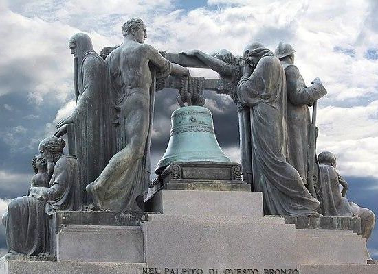 Al centro del monumento quattro grandi figure sorreggono una campana, copia della storica "Campanassa" del comune di Savona, che ogni giorno alle 18 batte 21 rintocchi in memoria delle vittime di tutte le guerre. Durante questa quotidiana commemorazione, il traffico stradale e pedonale della piazza e delle vie limitrofe si ferma per un minuto, in segno di rispetto.