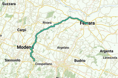 <p><a class="routeYou_embed" href="https://app.routeyou.com/it-it/route/view/11489038?utm_source=embed&utm_medium=article&utm_campaign=routeshare&navigation=external" title="Spilamberto - Ferrara - RouteYou" target="_blank"><img src="https://image.routeyou.com/embed/route/960x670/11489038-it@2x.png" style="width: 100%; height: auto;" alt="Spilamberto - Ferrara"></a></p>