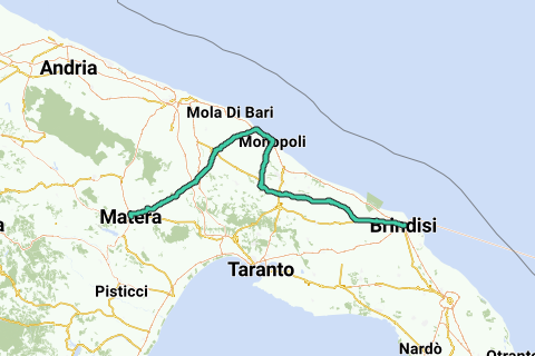 <p><a class="routeYou_embed" href="https://app.routeyou.com/it-it/route/view/14103808?utm_source=embed&utm_medium=article&utm_campaign=routeshare&navigation=external" title="6f - Matera - Brindisi ver - RouteYou" target="_blank"><img src="https://image.routeyou.com/embed/route/960x670/14103808-it@2x.png" style="width: 100%; height: auto;" alt="6f - Matera - Brindisi ver"></a></p>