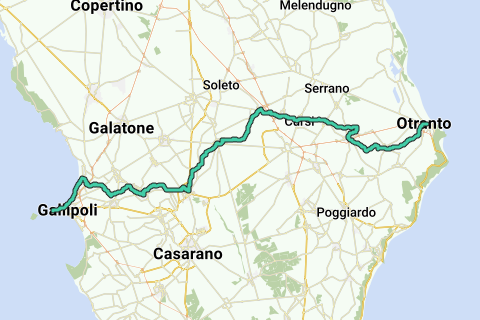 <p><a class="routeYou_embed" href="https://app.routeyou.com/it-it/route/view/560708?utm_source=embed&utm_medium=article&utm_campaign=routeshare&navigation=external" title="Otranto - Gallipoli - RouteYou" target="_blank"><img src="https://image.routeyou.com/embed/route/960x670/560708-it@2x.png" style="width: 100%; height: auto;" alt="Otranto - Gallipoli"></a></p>